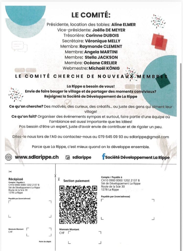 La Société de développement de La Rippe a pour objectif principal de rendre notre village plus vivant, plus dynamique et plus sympathique. Vous trouverez sur ce site les activités organisées par la SDLR, ainsi que bien d’autres informations utiles.